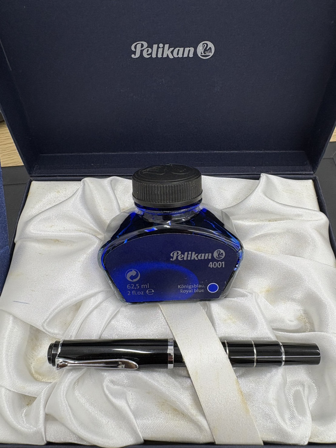 今回お買取りしたのは、ドイツの老舗筆記具ブランド Pelikan(ペリカン) の万年筆とインクセットです。