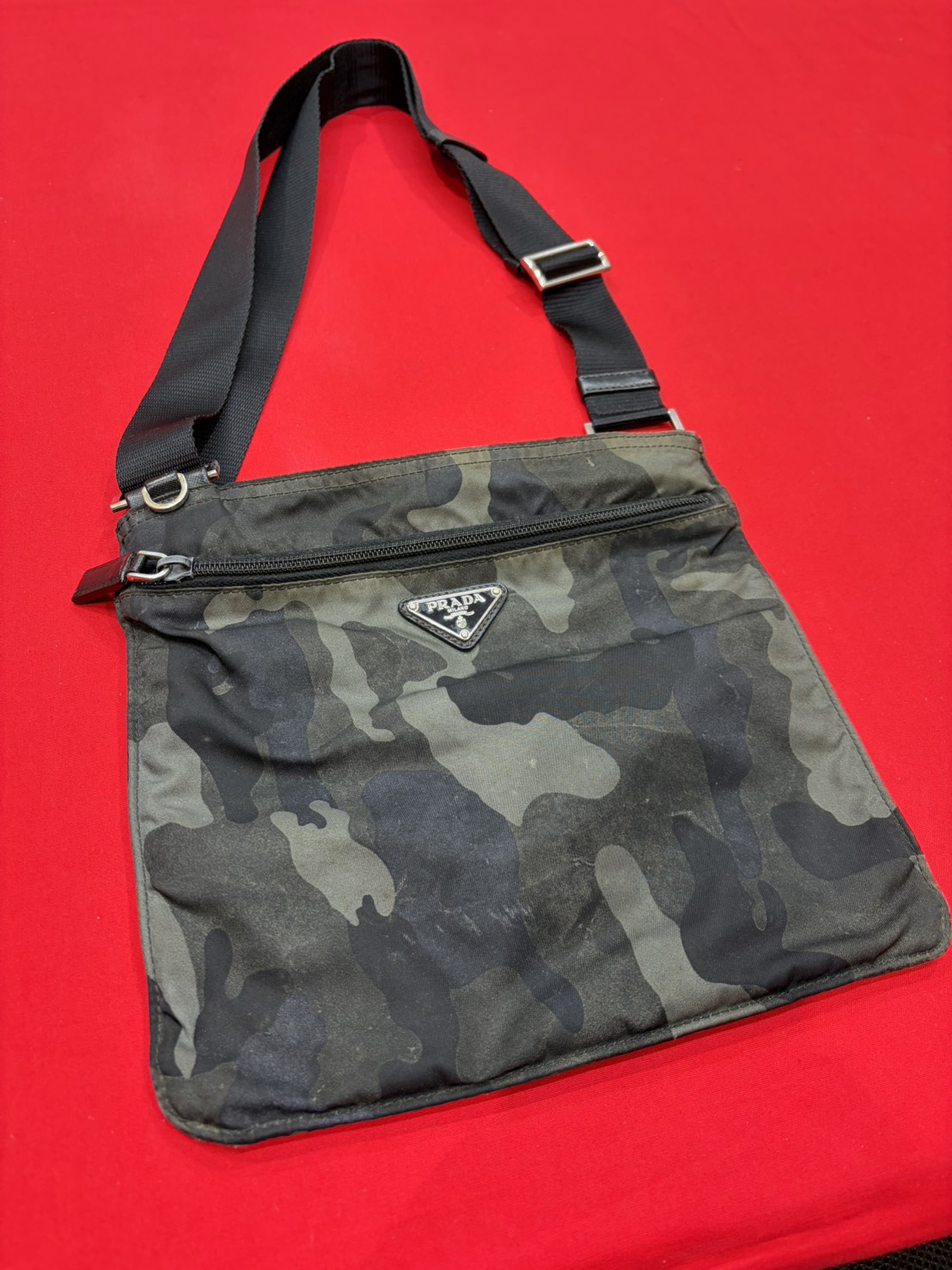 - 査定のポイント: 三角ロゴプレートのキズの少なさと、ナイロン特有の色褪せが少ない点を高く評価いたしました。カモフラ柄は個体によってパターンの見え方が異なりますが、こちらはバランスの良い配色で、プラス査定となりました。