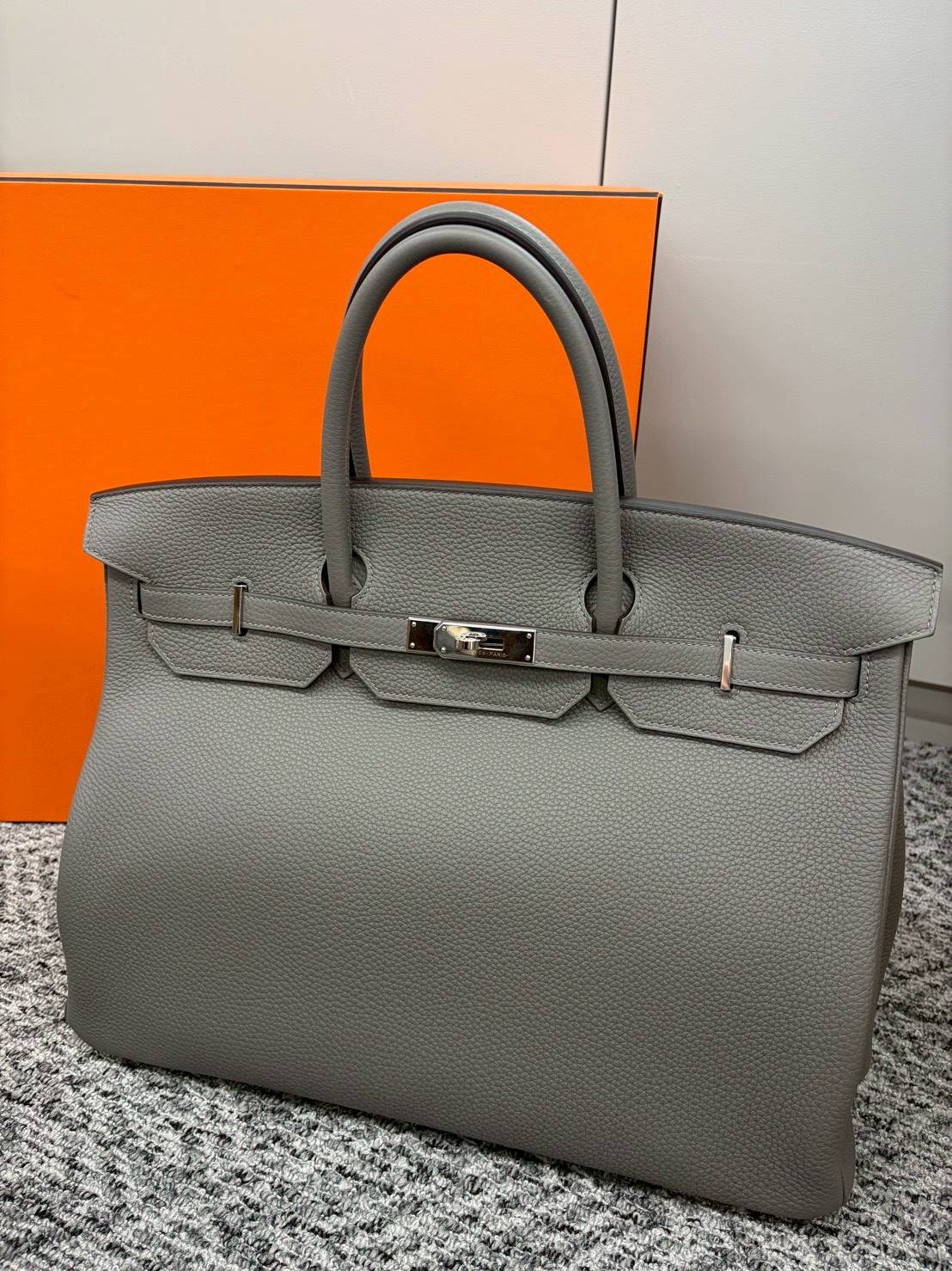 この度お買取りさせていただいたのは、洗練されたグレーカラーにシルバー金具が映える逸品。エルメス独自のトゴレザーが持つ独特のシボ感は、使い込むほどに深い味わいを増していきます。