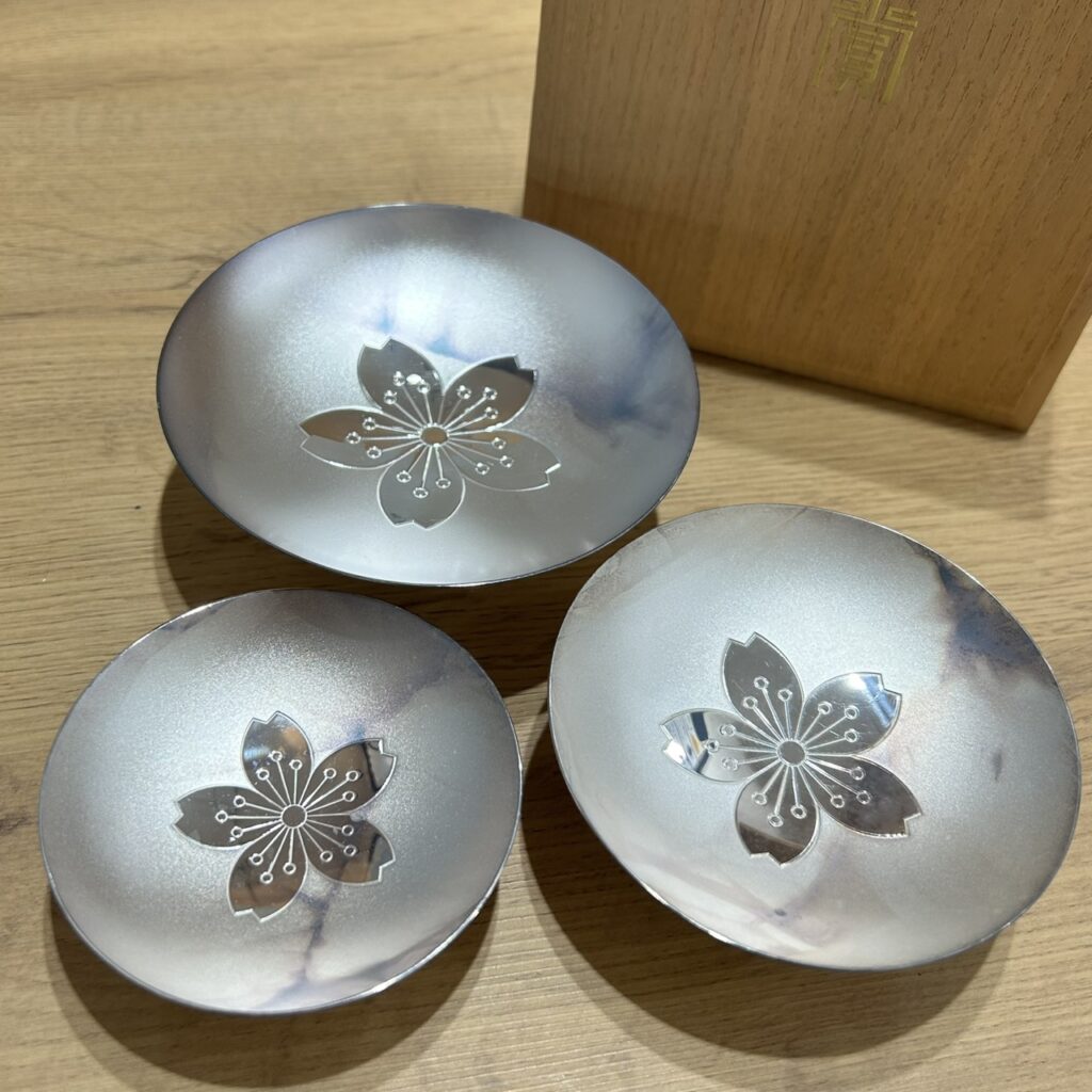 今回は遊座大山通り・板橋区にて、純銀 銀杯 ホールマーク付き 大中小 三点セットをお持ち込みいただきました。