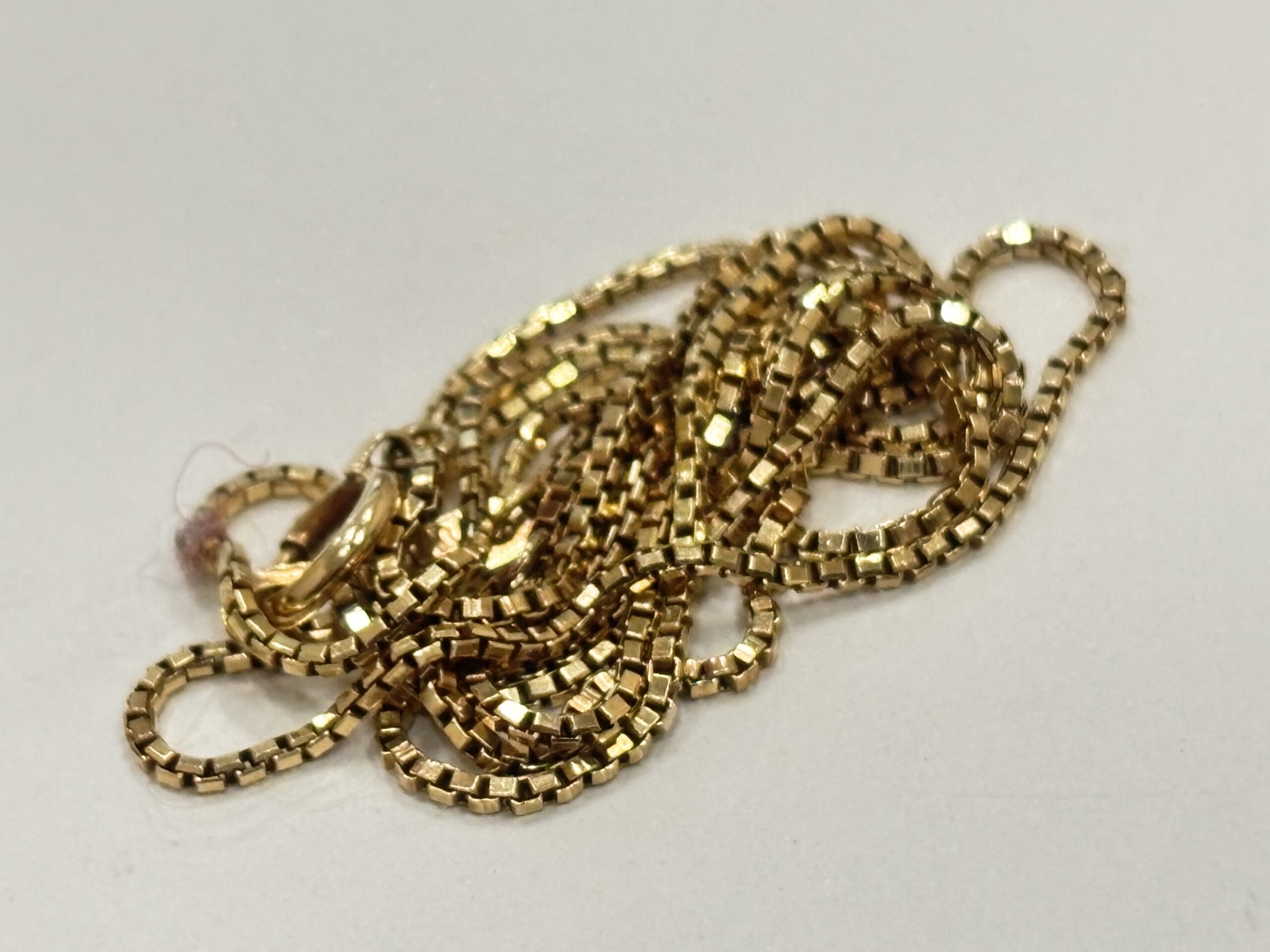 当店では、K18ベネチアンネックレスの当日査定・即日現金化に対応。刻印(K18・750)確認はもちろん、チェーンのみ・切れている状態・留め具不良でもしっかり査定いたします。ブランドジュエリーでなくても買取可能。最新の金価格を反映した適正価格でお買取りし、手数料は一切不要です。